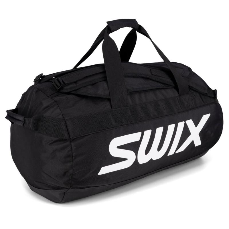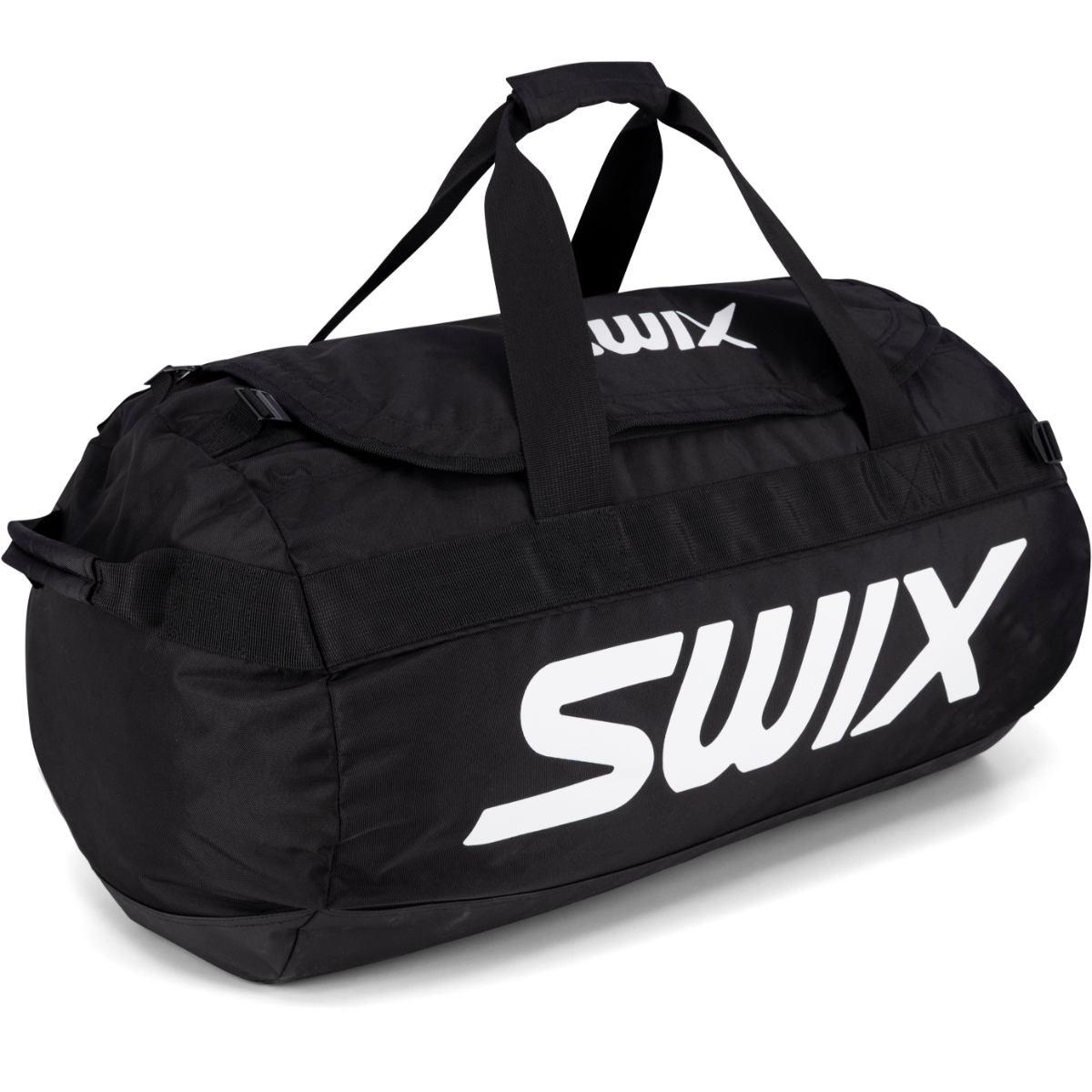 Swix 88-liter duffelbag er en robust og romslig bag laget av vanntett tarp. Baggen er utstyrt med en regnsikret glidelås til hovedrommet og et separat rom for vått eller møkkete utstyr. Intern mesh-lomme kan benyttes for oppbevaring av verktøy, smøring eller andre småting, mens en utvendig glidelåslomme gir enkel tilgang til ting du ønsker å ha raskt for hånden. Polstrede skulderstropper gir behagelig bæring og kan dessuten stues vekk når de ikke trengs, mens robuste bærehåndtak gir enkel håndtering inn og ut av bil eller på flyplass.