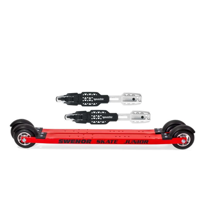 Fantastisk skøyterulleski for de yngste! Stammen er av aluminium og nedsenket for økt stabilitet. Swenor Skate Junior er en lettrullende rulleski av god kvalitet som er trygg å gå på. Skien er kortere enn storebror Swenor Skate som gjør den lett å håndtere for yngre utøvere.