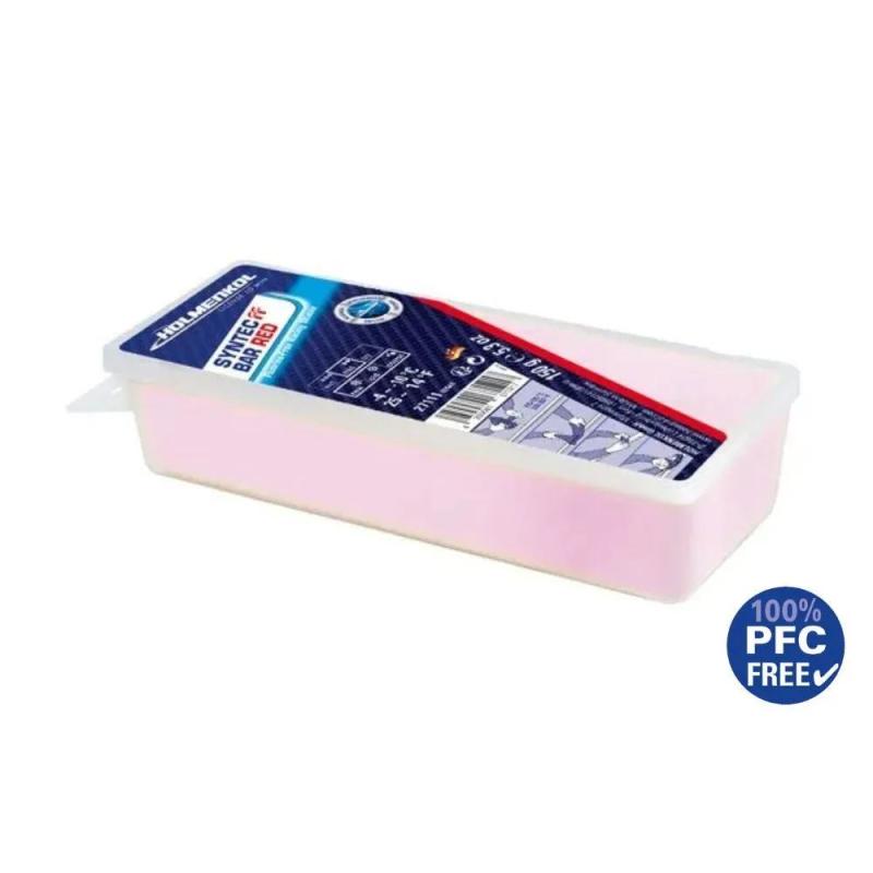 Holmenkol Syntec FF Rød er en varmvoks for konkurrende utøvere og ambisiøse amatører som krever det beste av det beste. Den nye fluorfrie oppskriften gir maksimal vann- og smussavvisning og veldig høy akselerasjon, og egner seg for fin- til grovkornet og fuktig snø i temperaturer fra -10° til -4°C. Påføres med smørejern ved 115° til 125°C.