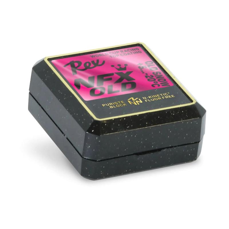 Rex NFX OLD N-Kinetic Block er en fluorfri glider laget for bruk på gammel grovkornete eller isete snø i temperaturer fra +5°C til -20°C. Glideren inneholder samme ultraharde polymer-voks som benyttes i Rex' NFX41-pulver og brukes som topplag over annen glidvoks.