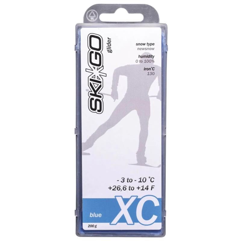 Skigo XC Blue er en fluorfri treningsglider som fungerer utmerket på nysnø i temperaturer fra -10° til -3°C. Smeltes inn ved smørejernstemperatur på 130°C.