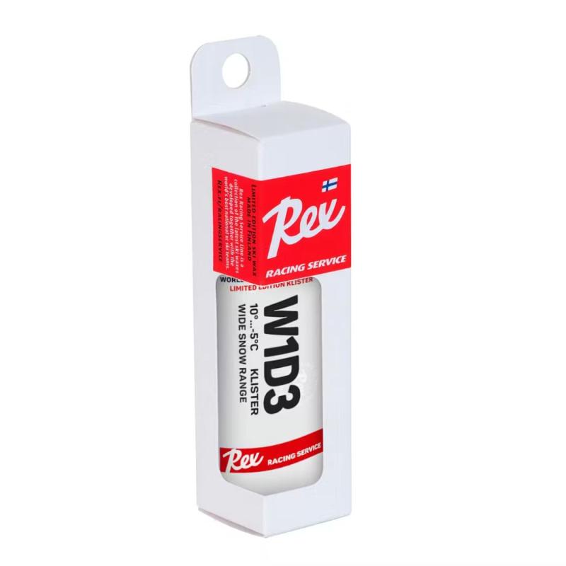 Rex W1D3 Racing Service klister er et høytytende universalklister designet for å dekke et bredt spekter av snøforhold. Klisteret har blitt utviklet for ypperlig ytelse på alt fra våt, grovkornet snø til glaserte spor, og takler dessuten også tørre flekker i skyggefulle områder. Inneholder tjære. W1D3 Racing Service klister brukes som regel som topplag over Rex Purple klister. Arvtageren etter Start Wide?