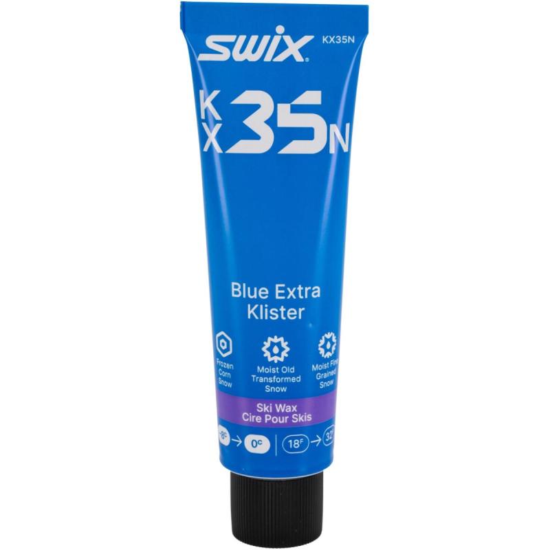 KX35N Blå Ekstra klister fra Swix fungerer best i temperaturer mellom 0°C til -8°C, men har et bredt bruksområdet både som mellom- og topplag. KX35N tåler kulde og finkornet snø bedre enn vanlig klister, med god slitestyrke og godt feste selv på lange skiturer. Som topplag anbefales det brukt på finkornet snø fra 0°C og lavere. Som topplag anbefales det brukt med KX20 eller KB20 under og festevoks eller universalklister som topplag. Swix KX25N Blå Ekstra er et allsidig klister som passer like godt til konkurranse som til trening.