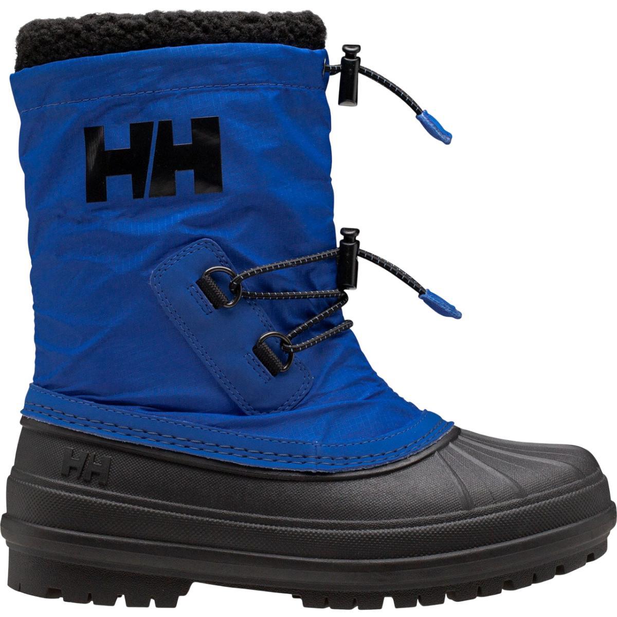 Helly Hansen Varanger vinterstøvel til barn er en ypperlig støvel for basing og lek i våt snø. Støvelen har den klassiske duckboot-profilen med vanntett vulkanisert gummi nederst. Overdelen er laget av robust og vannavvisende ripstop-materiale for god beskyttelse og slitestyrke, mens varm ullfilt på innsiden og imitert saueskinn på skaftet gir god komfort og varme. Støvelen har fått et løft med Helly Hansens HH® FreezeBlock-teknologi, et tynt lag med termisk aluminiumsfolie bygd inn i innersålen som fungerer som et beskyttende skjold og holder føttene varme og tørre. Slitesålen av gummi gir godt grep på isete underlag.