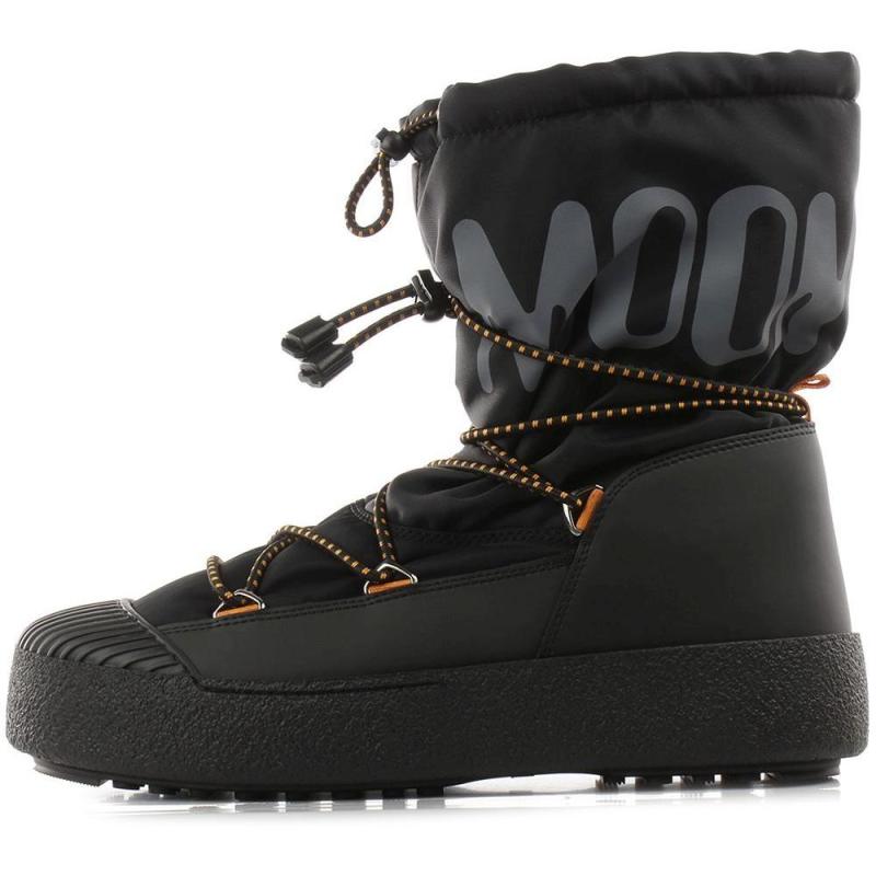 Moon Boot Mtrack Polar vinterstøvel til herre kombinerer egenskapene til en fjellstøvel med komforten til en joggesko, utstyrt med en vannavvisende membran og forseglede sømmer for ypperlig beskyttelse mot snø og regn. Fleksibel mellomsåle av TPU gir god komfort, mens slitesåle av gummi med Moon Boots ikoniske sugekoppmønster gir optimalt grep på glatt underlag. Hurtiglissesystem sørger for superrask av- og påkledning.
