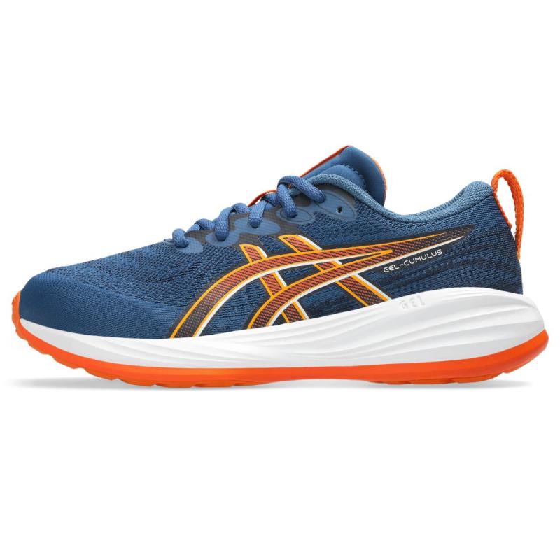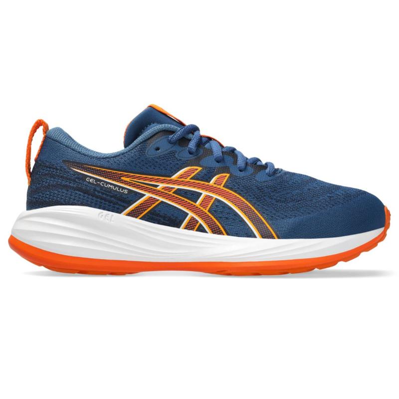 Asics Gel-Cumulus 27 GS joggesko til junior er en allsidig sko som egner seg både til trening og en aktiv hverdag. Overkonstruksjon i mesh gir god pusteevne og holder føttene tørre og komfortable gjennom hele dagen, mens Asics' AMPLIFOAM mellomsåle med GEL-teknologi gir myke landinger og behagelig demping.