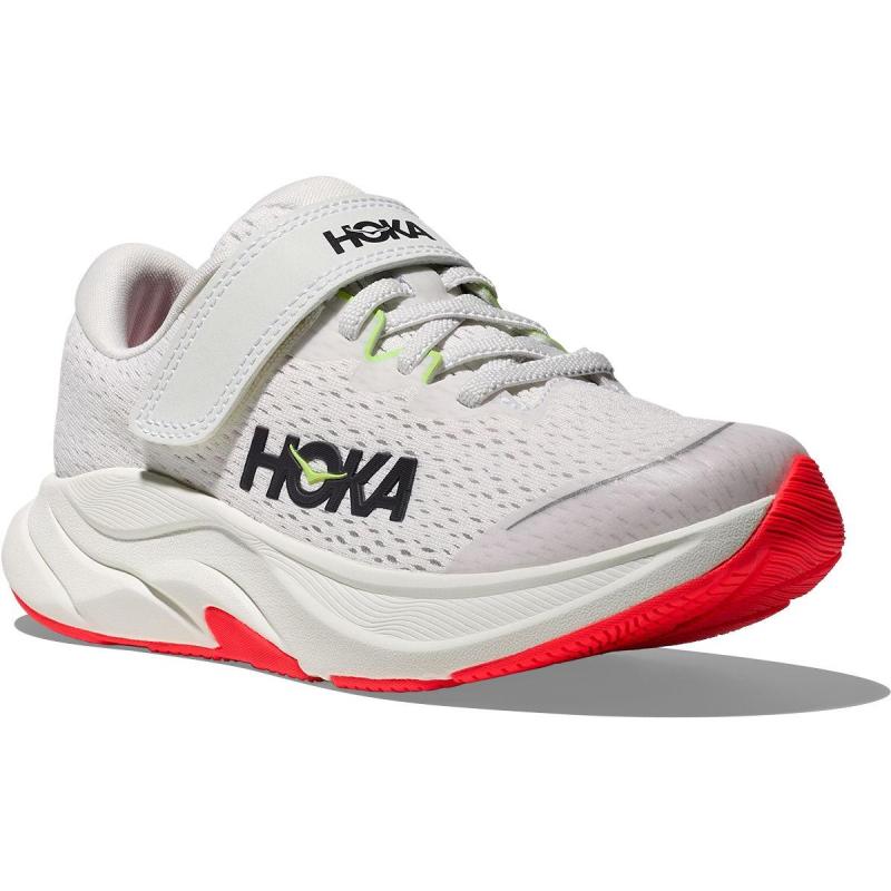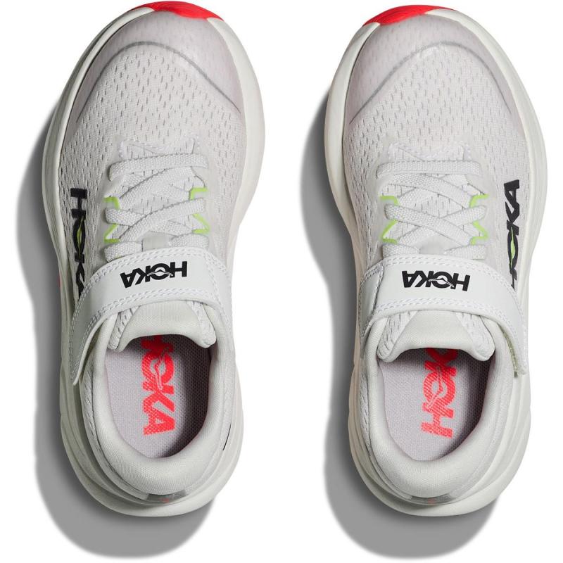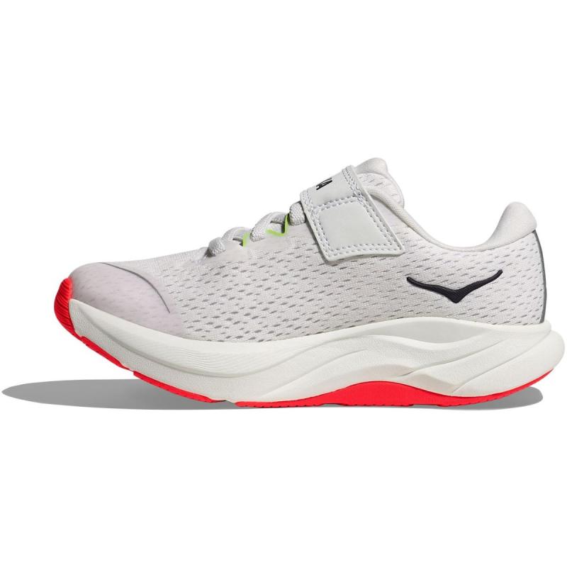 Er du på utkikk etter en robust og behagelig joggesko til de yngste? Da er dette skoen du leter etter! Hoka Rincon 4 leverer ypperlig komfort og slitestyrke med robust TPU over tærne og rundt hælen, Durabrasion gummisåle med godt grep, ultradempende EVA-midtsåle (som dessuten er laget av 30% sukkerrør) og overkonstruksjon av mesh som sitter sikkert rundt foten. MetaRocker™-teknologi, fokusert rundt bakre del av foten, kombinert med Active Foot Frame™-teknologi gir ypperlig bakkekontakt, støtte og stabilitet. Borrelåsstropp sørger for at skoen er enkel å ta av og på, mens 360° reflektive detaljer gir ekstra synlighet på skoleveien.
