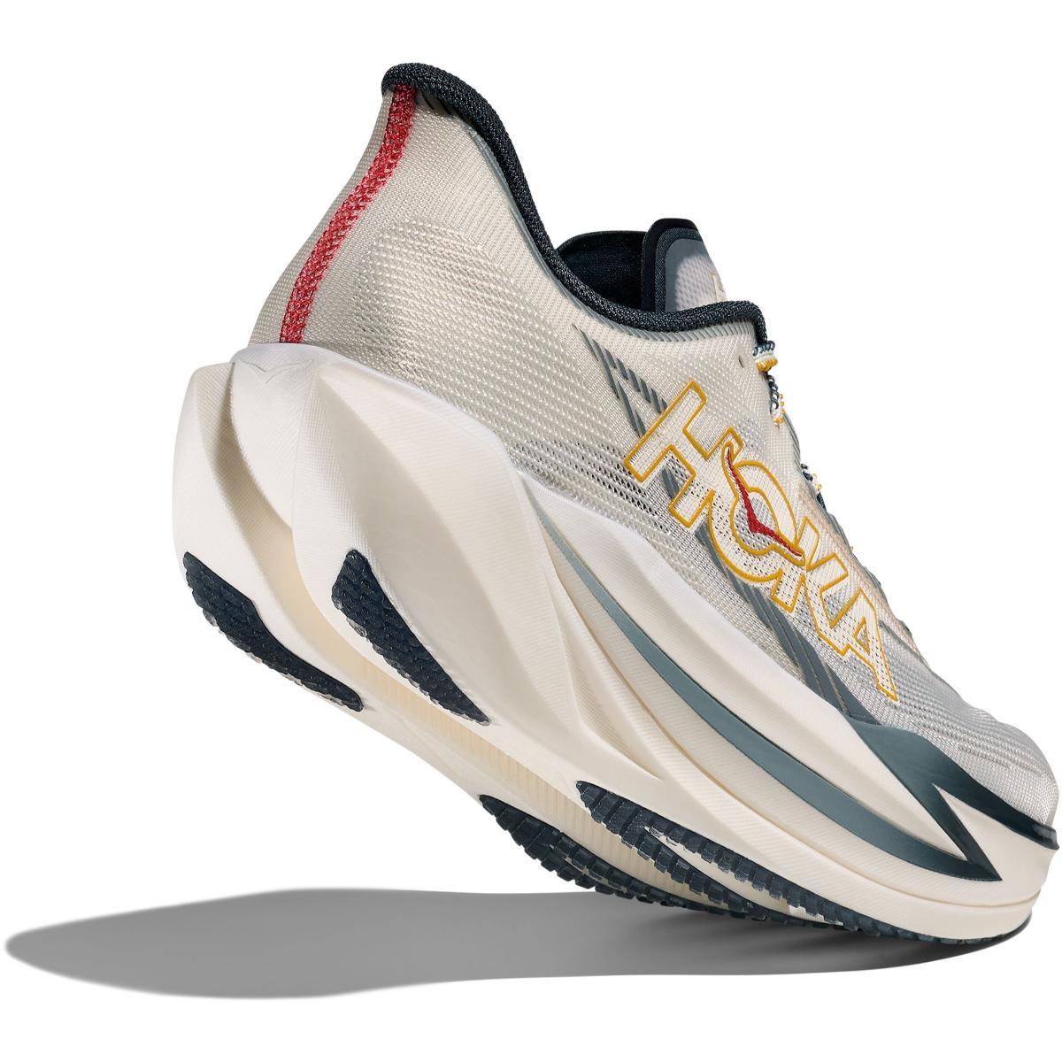 Cielo X1 3.0 tar over som HOKAs flaggskip for raske økter og gateløp. Den er 20 gram lettere enn forrige utgave og kommer med en tydelig forbedret stabilitet takket være ny geometri og en jevnere mellomsåle uten innerskjæring. Den fulle karbonplaten gir et kraftig fraspark, mens rocker-designet holder deg effektivt i steget når tempoet øker.