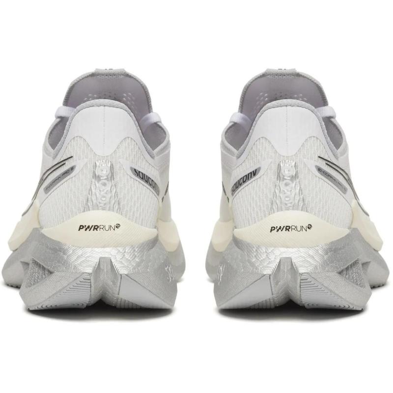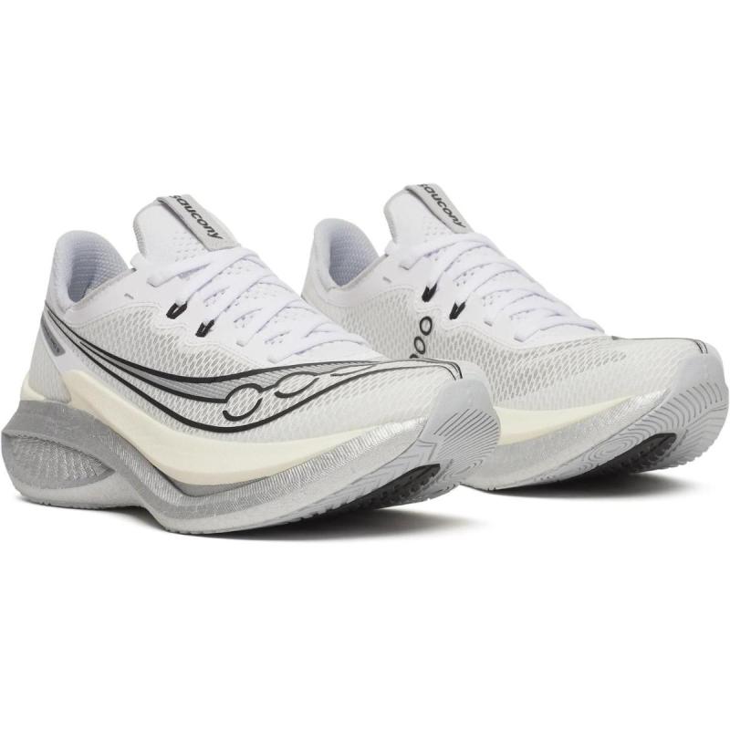 Saucony Endorphin Pro 5 er en ultrarask konkurransesko med PWRRUN PB/HG-skum, karbonplate og SPEEDROLL-teknologi for maksimal fremdrift, eksplosiv responsivitet og ypperlig demping både under konkurranse og høyhastighetsøkter.