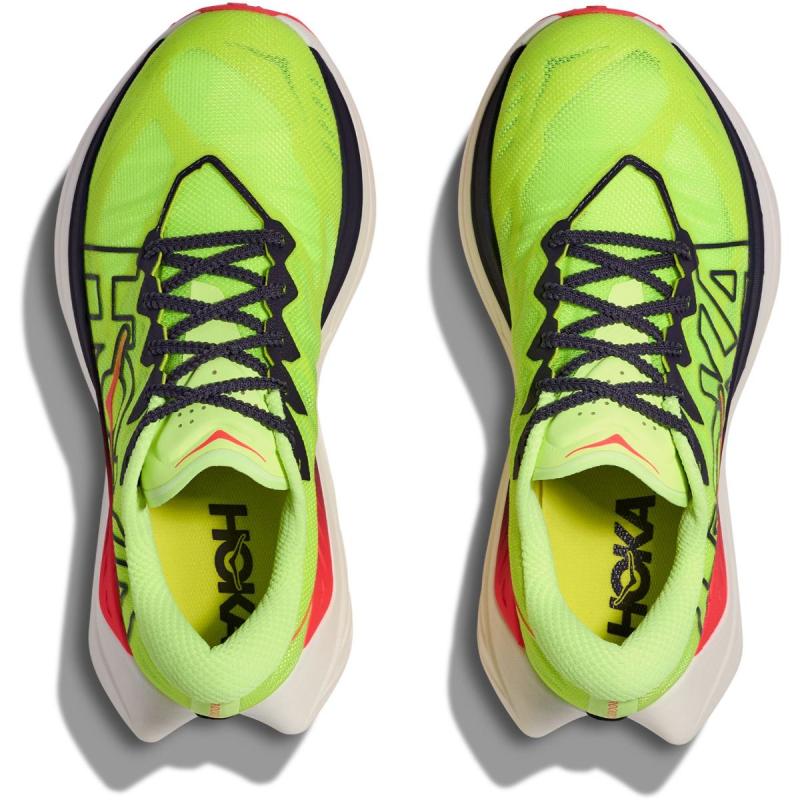 HOKA Rocket X Trail er en ren fartspakke for terrengløpere som vil ha maksimal respons på fine stier og grus. Her møter du en helt ny type mellomsåle med A‑TPU superskum – et materiale som gir rå energiretur, høy komfort og imponerende holdbarhet. Mellom lagene av A‑TPU ligger det en H‑formet karbonplate, designet for å gi både fremdrift og myk overgang i steget. Kombinasjonen av superskum, plate og en aggressiv rocker gjør det enklere å holde høy fart over tid, enten du jakter ny rekord eller skal gi full gass på intervaller.