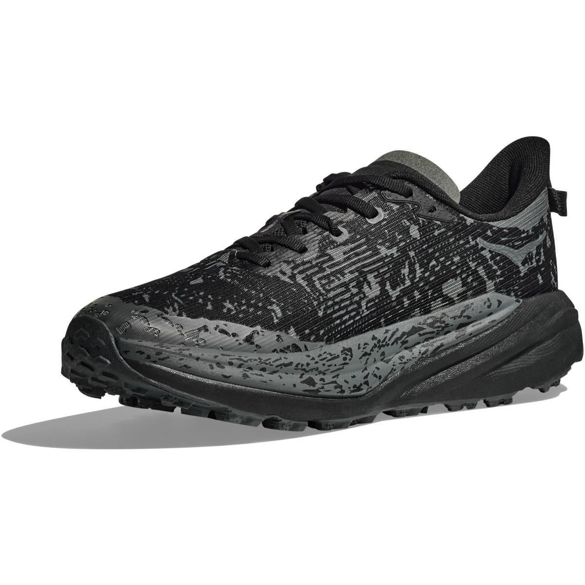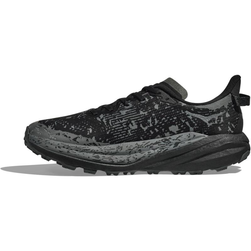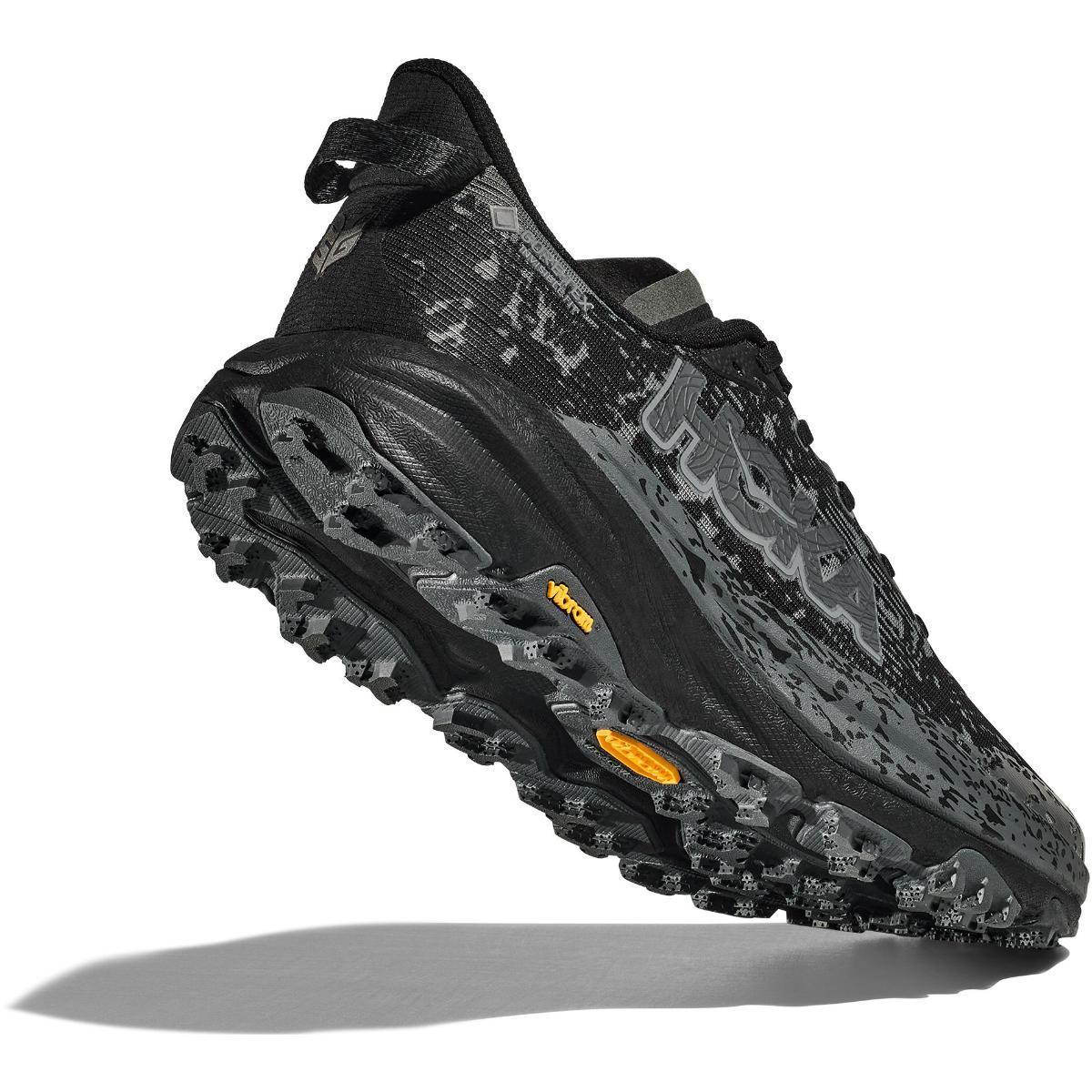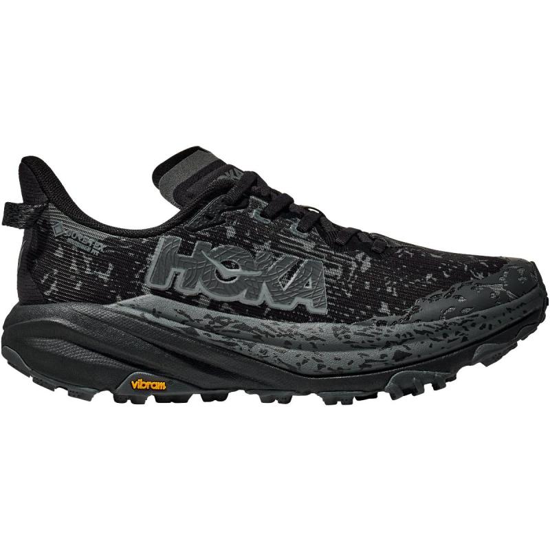 Hoka Speedgoat 6 Gore-Tex er designet for å takle teknisk terreng med letthet. Skoen har en GORE-TEX Invisible Fit-membran som gir vanntett beskyttelse uten å gå på kompromiss med fleksibilitet og komfort. Den lette, pustende tekstiloverdelen sørger for god ventilasjon, mens en beskyttende tåhette gir ekstra beskyttelse mot steiner og røtter. Mellomsålen av lett skum gir utmerket demping og respons, og Vibram Megagrip-yttersålen sikrer optimalt grep på både våte og tørre overflater. Med 5 mm dropp og en MetaRocker-geometri, gir Speedgoat 6 GTX en naturlig hæl-til-tå bevegelse for en komfortable løpetur.