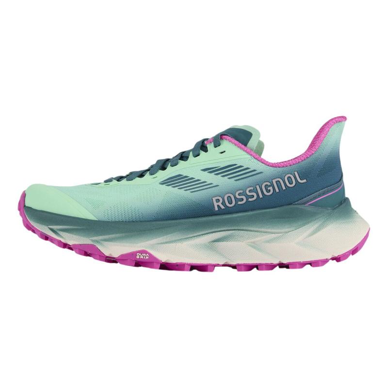 Under skoen finner du Rossignols DuraGrip Ultra-yttersåle, laget av en slitesterk gummiblanding med 4mm knaster som gir sikkert grep på alt fra hardpakket sti til løs grus og tekniske partier. Med en drop på 6 mm og en sålehøyde på 32mm får du en god kombinasjon av løpsfølelse, stabilitet og beskyttelse. Vekten på kun 255 gram per sko (i str. 38) gjør dem lette nok for konkurranse, men robuste nok for lange treningsøkter.