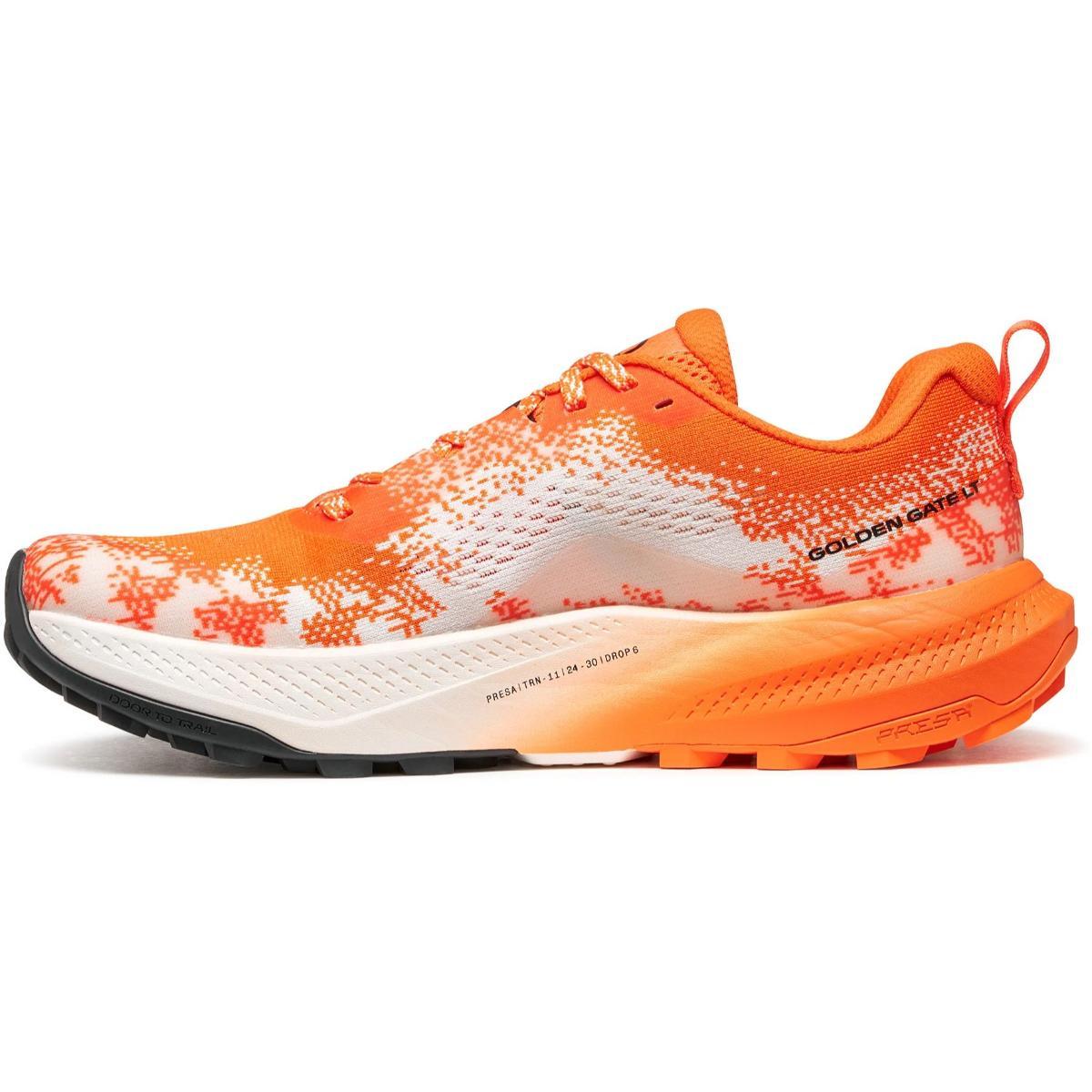 Scarpa Golden Gate LT er en lett terrengko for deg som ofte skifter mellom asfalt, grus, kjerreveier og sti. Dette er en sann blandeveissko som føles jevn og effektiv på landevei samtidig som den leverer stabilitet og grep når asfalten tar slutt. Pustende Eco Mesh-overkonstruksjon holder føttene tørre og avkjølte, og er kombinert med Scarpas innovative SockFit LW-konstruksjon som omfavner foten som en sokk og gjør at skoen føles som en forlengelse av deg. SockFit LW-systemet, utviklet spesielt for terrengsko, er dessuten utstyrt med en tunge laget av ett enkelt stykke stretch-materiale som omfavner innsteget for bedre lateral stabilitet og kontroll over teknisk terreng. Midtsåle av CM-EVA-skum med 20% PEBAX sørger for balansert demping som leverer en naturlig løpsfølelse som verken føles for myk eller for hard, mens Scarpas egne PRESA® slitesåle med SuperGum gummiblanding sikrer pålitelig grep over blandede underlag. Scarpa Golden Gate LT er det perfekte valget for deg som søker komfort og allsidighet som raskt tilpasser seg uplanlagte ruteendringer underveis.