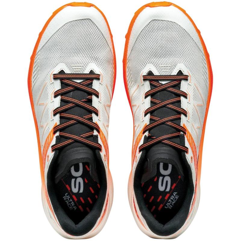 Scarpa Spin Ultra 2 henter inspirasjon fra ultradistanseløpere, designet for å takle lange distanser over alt slags terreng. Skoen kombinerer lav vekt, presisjon og slitestyrke og leverer den perfekte balansen mellom demping og responsivitet under selv de mest krevende løpene. BOUNCE FOAM midtsåle leverer uslåelig energiretur, støtte og demping i overgangene, mens Vibram® slitesåle med MEGAGRIP gummiblanding og Scarpas ekslusive design sikrer eksepsjonelt grep og tilpasningsdyktighet på alt slags underlag. Overkonstruksjonen benytter Scarpas EXO- og SockFit LW-system. Det utvendige EXO-systemet er utstyrt med laterale forsterkninger som utgjør en helintegrert del av overkonstruksjonen og fungerer som et eksoskjelett som leverer lateral støtte og holder foten på plass. Innvendig omfavner Scarpas innovative SockFit LW-konstruksjon foten som en sokk og gjør at skoen føles som en forlengelse av deg. SockFit LW-systemet, utviklet spesielt for terrengsko, er dessuten utstyrt med en tunge laget av ett enkelt stykke stretch-materiale som omfavner innsteget for bedre lateral stabilitet og kontroll over teknisk terreng.
