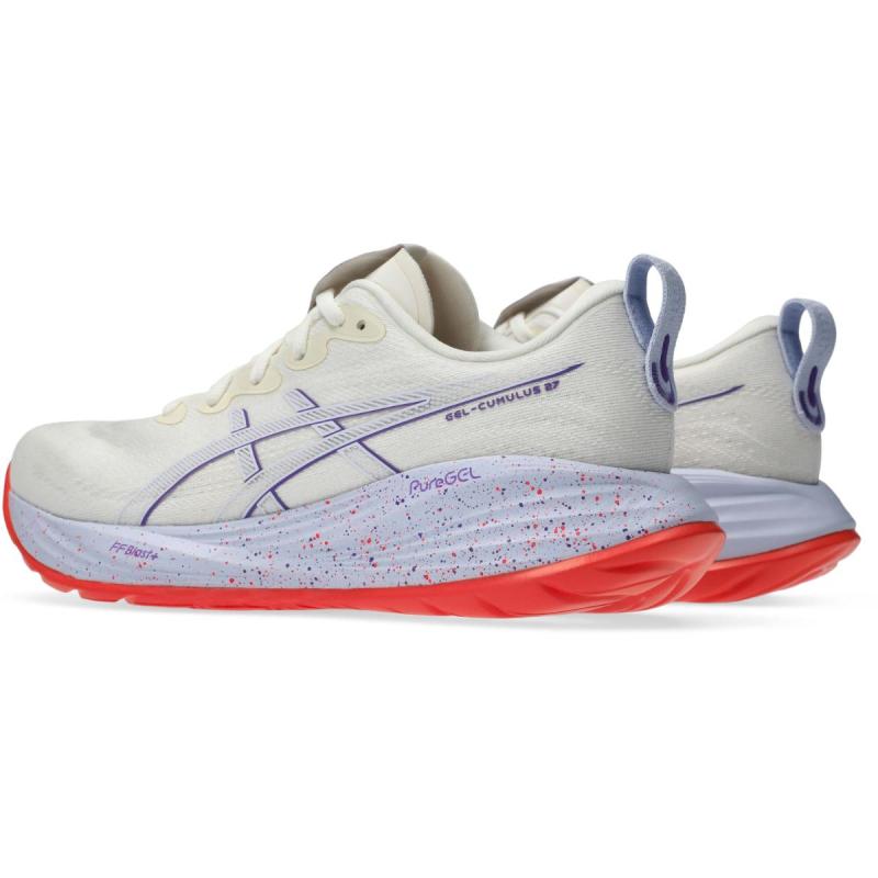 Asics Gel-Cumulus 27 Tokyo til dame er utstyrt med PureGEL™-teknologi som gir økt sjokkabsorbering og dermed redusert belastning på leddene. Midtsålen har fått et oppdatert design med en kombinasjon av FF BLAST™ PLUS-skum for høyytelses demping, og FluidRide™ yttersåle før jevnere overganger takket være lav vekt. Overkonstruksjon i mesh gir økt pusteevne og komfort, den er dessuten også laget av 100% resirkulerte materialer for en grønnere tilnærming.