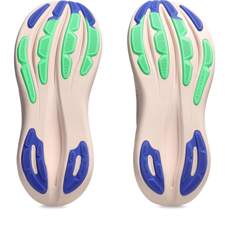 Asics Gel-Nimbus er en av de mest komfortable modellene i Asics løpesko-segment. Den nyeste modellen, Gel-Nimbus 28 er 25g lettere enn forgjengeren og fortsetter å levere ypperlig demping som egner seg til både korte og lange turer. Midtsålen er utstyrt med en kombinasjon av FF BBLAST PLUS-demping og PureGEL-teknologi. Disse komponentene hjelper med å skape skyliknende demping samtidig som vekten holdes lav. Strategisk utformet overkonstruksjon av lett og pustende mesh gir en myk og behagelig passform som omfavner foten helt uten overflødige materialer, mens HYBRID ASICSGRIP yttersålen kombinerer ASICSGRIP-gummi og AHARPLUS-materialer for ypperlig grep over blandet underlag.