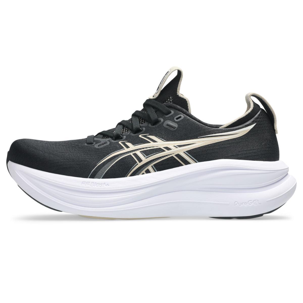 Asics Gel-Nimbus er en av de mest komfortable modellene i Asics løpesko-segment. Den nyeste modellen, Gel-Nimbus 28 er 25g lettere enn forgjengeren og fortsetter å levere ypperlig demping som egner seg til både korte og lange turer. Midtsålen er utstyrt med en kombinasjon av FF BBLAST PLUS-demping og PureGEL-teknologi. Disse komponentene hjelper med å skape skyliknende demping samtidig som vekten holdes lav. Strategisk utformet overkonstruksjon av lett og pustende mesh gir en myk og behagelig passform som omfavner foten helt uten overflødige materialer, mens HYBRID ASICSGRIP yttersålen kombinerer ASICSGRIP-gummi og AHARPLUS-materialer for ypperlig grep over blandet underlag.