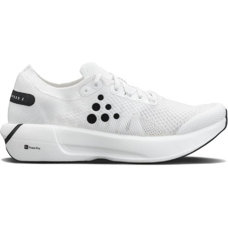Craft Nordlite Speed 2 representerer det neste steg innen responsivitet og ytelse for dedikerte landeveisløpere, utstyrt med en forbedret passform og stabil støtte for utmerket komfort under høyintensiv langdistanseløping. Superkritisk Cr Foam Pro™-mellomsåle med 25% PEBA sørger for ypperlig støtdemping og stabilitet med redusert vekt og eksplosiv respons, mens en forbedret Ultra Carbon Plate™ gir en dynamisk fordel i effektivitet og fremdrift. Flat yttersåle gir minimalt vekt og maksimalt grep, mens overdel av dobbeltsidig teknisk strikket materiale sørger for ypperlig pusteevne og maksimal komfort. Den kileformede pløsekonstruksjonen skaper en tettsittende passform som hindrer at foten glir inni skoen. I tillegg sørger det vevde fibernettverket over midtfoten, sammen med den nye Craft Endurance Fit®-passformen, for at skoen sitter som støpt både under lange turer og intensive intervaller.