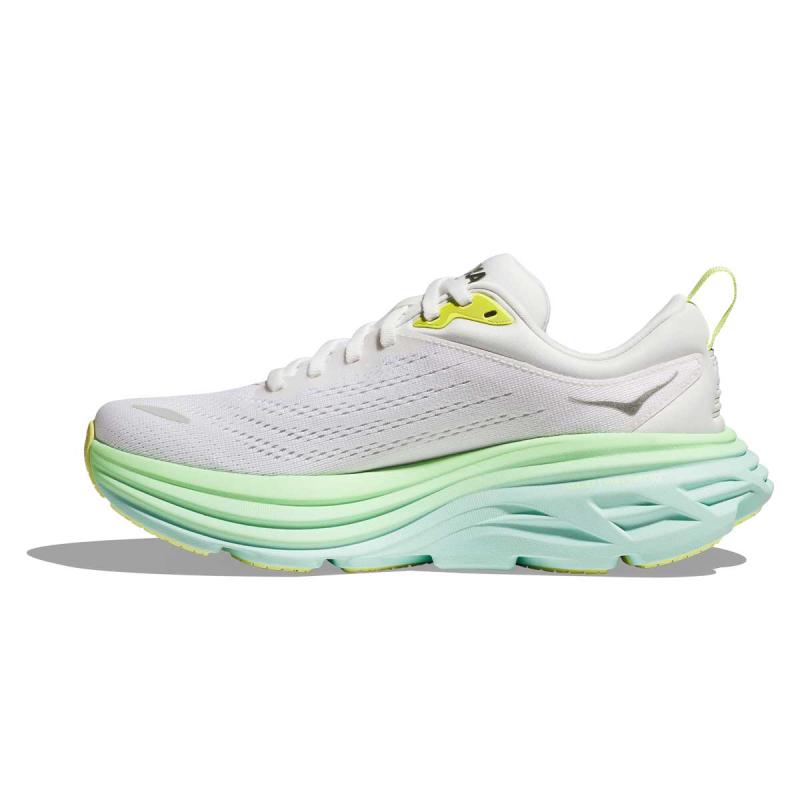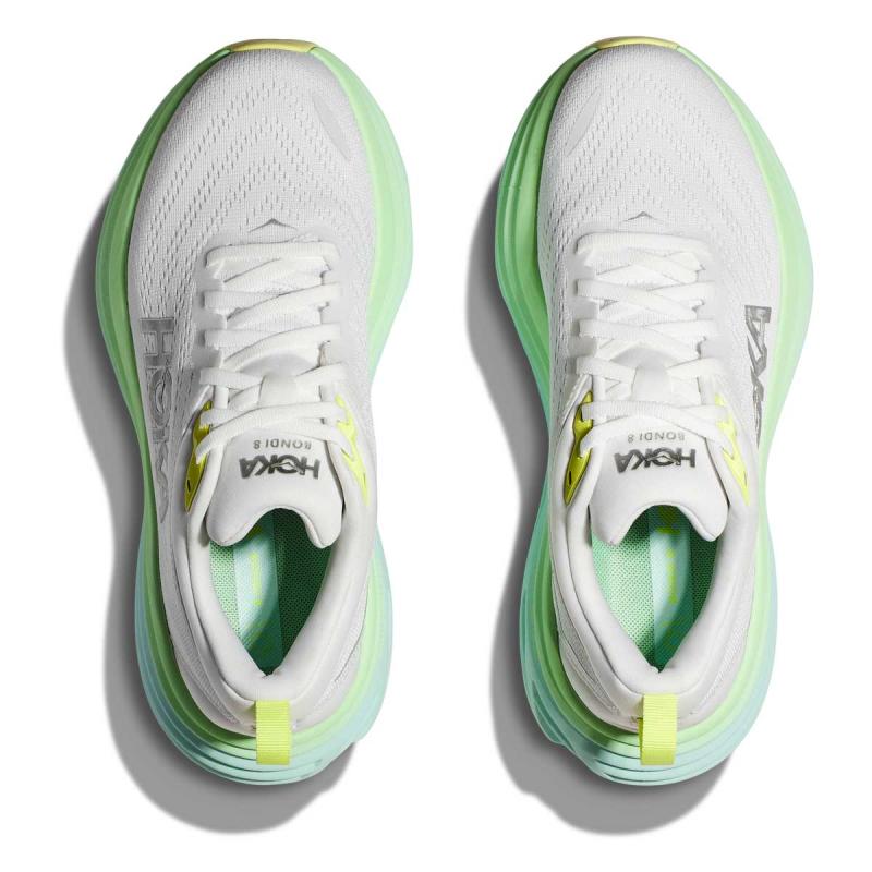 Hoka Bondi 8 til dame har fått et enda mykere og mer komfortabelt mellomsåleskum. For å beholde stabiliteten har plattformen og sålebasen blitt noe bredere. Det gjør Bondi til en stødig og trygg sko. Helen er strekt noe lenger ut bak for å ta i mot støtet man utsetter kroppen ved landing på en enda mer skånsom måte. Samtidig skaper det en svært dynamisk overgang til frasparket.