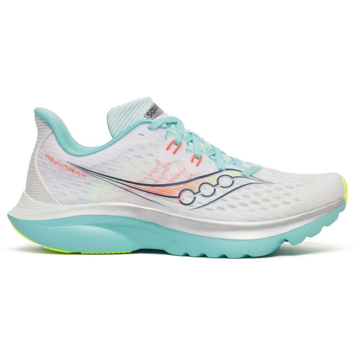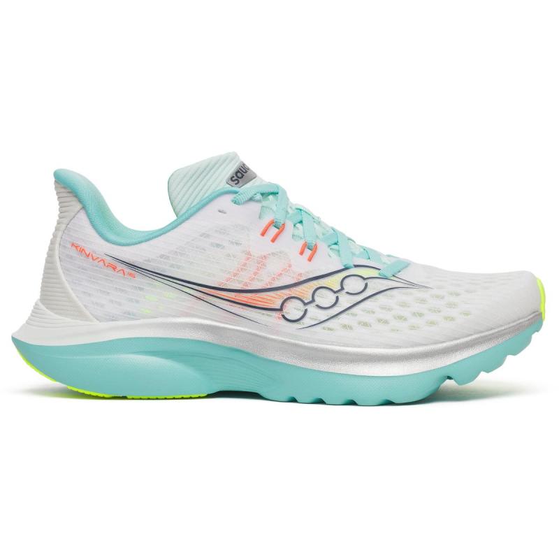 Saucony Kinvara 16 til dame holder ting enkelt med et lavprofils design og akkurat nok demping til å løpe fort og lenge. Lav vekt og høy fleksibilitet gir en treningssko som egner seg godt til tempoturer og raske treningsturer. Oppgradert PWRRUN-mellomsåle gir forbedret energiretur og slitestyrke, og leverer høy responsivitet som holder farten oppe gjennom løpssteget. Dette, kombinert med den klassiske Kinvara-geometrien gir en en jevn og effektiv løpsfølelse, bygget for fremdrift. Slitesåle med XT-900-gummi på strategiske punkter gir ekstra grep og slitestyrke der det trengs mest uten å legge til unødvendig vekt. Overkonstruksjon i mesh gir en sikker og komfortabel passform som puster, og er designet for å bevege seg med deg for distraksjonsfri komfort som lar deg fokusere fullt ut på løpingen. Dersom du er på utkikk etter en lett, rask og responsiv løpesko for asfalt er Saucony Kinvara 16 for deg.