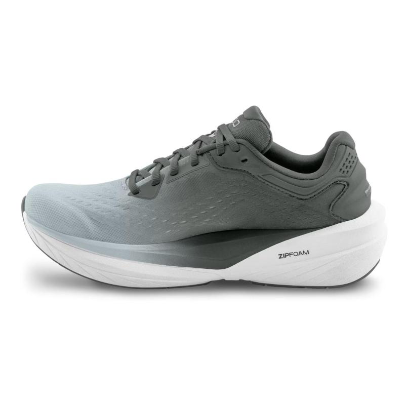 Topo Phantom 4 er siste utgave av Topos veldempede nøytrale løpesko, nå med en da mer demping, reponsivitet og komfort. Phantom 4 har 2mm mer stack enn forgjengeren, med en 35-30mm plattform ekstra demping, mens ZipFoam™ skumblandingen benyttet i mellomsålen er lettere, mykere og mer responsivt enn noensinne. Dette er et proprietært blandingsskum som er spenstigere enn EVA-skum samtidig som det beholder energireturen gjennom skoens levetid. Phantom 4 har selvsagt beholdt den romslige tåboksen som lar tærne spre seg naturlig, for ypperlig komfort. Det helt nye designet, fra overkonstruksjon til slitesåle, gir et strømlinjeformet og dynamisk utseende som egner seg like godt til den daglige løpeturen som til gåturer og hverdags.