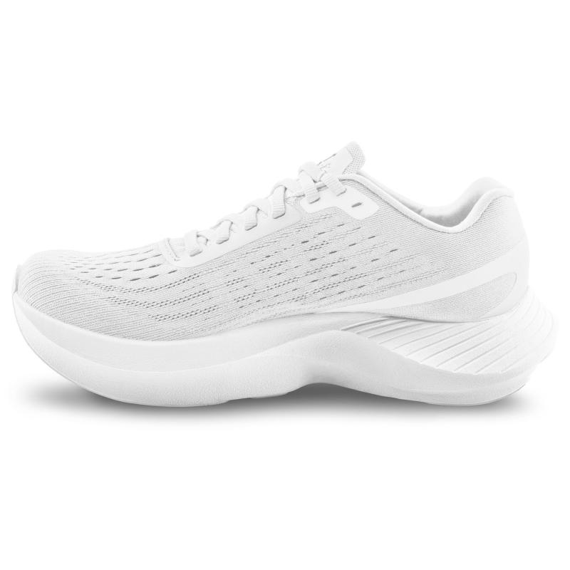 Topo Specter er en lett og godt dempet mengdesko som ikke er fremmed for litt raskere tempo med sin responsive mellomsåle med en Pebax Powered® kjerne. Skoens utforming gir er trygg og stabil plattform, samtidig som den har "rocker" i forfoten for raskere stegavvikling.