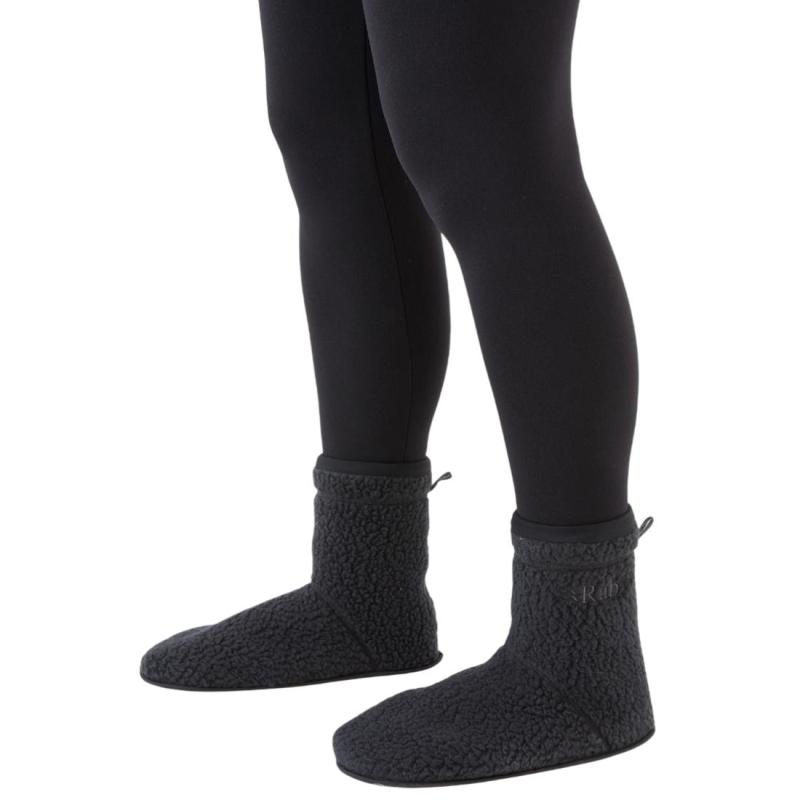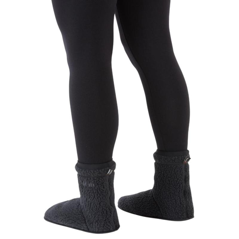 Rab Outpost tøfler er laget av myk og varm Polartec® Thermal Pro® shearling-fleece. Dette er en meget pustende og varmende fleece med en naturlig ull-look. Elastisk mansjett gir en god passform og holder varmen inne, mens den sklisikre PU-sålen gir godt grep selv på glatte gulv. EVA-skum i sålen sørger for god komfort.