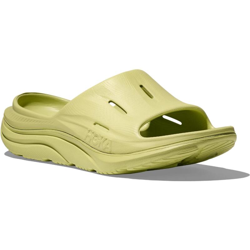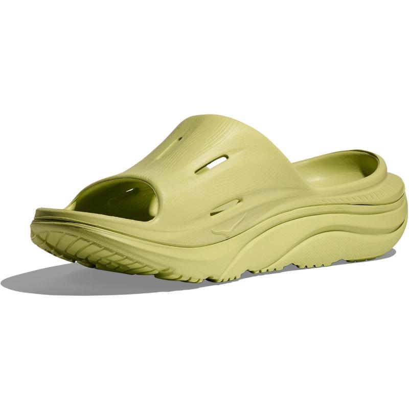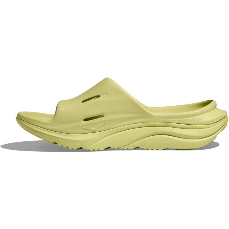 Hoka Ora Recovery Slide 3 er den ultimate slip-on sandalen for å gi føttene dine den ultimate komforten etter en lang og hard trening. Designet med en ergonomisk formet mellomsåle som gir støtte og demping til føttene, samt en myk overside som gir komfort og pusteevne, vil disse sandalene sørge for at føttene dine får den restitusjonen de trenger etter en hard treningsøkt eller løp.