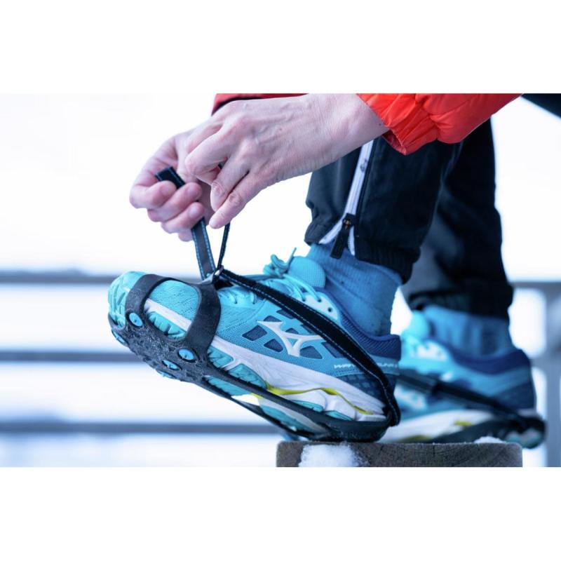 Nordic Grip Running & Hiking brodder er spesialutviklet for deg som liker å løpe og gå tur i terrenget vinterstid. En ekstra stropp fra hæl til vrist sørger for at broddene sitter godt på skoene, med en nøye gjennomtenkt utforming og piggplassering testet av aktive løpere. Brodden har 7 solide tungsten-pigger fordelt på en gummiramme av robust TPE testet ned til -40°C. Running & Hiking-broddene er et essensielt tilbehør for deg som løper ute året rundt!