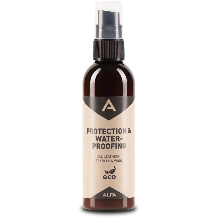 Alfa impregneringsspray beskytter skoene og støvlene dine fra vann og møkk og er egnet for alle slags materialer, fra fullnarvet lær, nubuck og semsket lær til tekstil og ull. Sprayen består utelukkende av miljøvennlige og nedbrytbare ingredienser og kan benyttes innendørs. Flasken kan også resirkuleres.