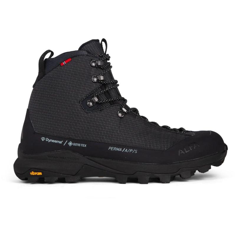 Alfa Perma GORE-TEX til herre er en fjellstøvel for kalde forhold som kombinerer eksepsjonell slitestyrke og lav vekt. Overkonstruksjonen er laget med Dyneema®-fibre, verdens sterkeste fiber, og sikrer ultimat ytelse i krevende terreng. Dette er kombinert med Solarcore® aerofoam, et NASA-inspirert isolasjonsmateriale som leverer uslåelig varme selv under kompresjon, og Vibram® Litebase slitesåle med Traction Lugs og ICETREK gummiblanding for pålitelig grep på isete og kalde overflater. GORE-TEX-liner holder føttene tørre og komfortable, mens midtsåle av EVA-skum gir god demping og stabilitet uten unødvendig vekt. Det innovative lissesystemet muliggjør rask og enkel tilpasning for en optimal passform, mens en beskyttende gummirand rundt hele skoen gir ekstra beskyttelse mot slitasje for økt levetid. Alfa Perma GORE-TEX er den ultimate støvelen for krevende fjellturer under kalde vinterforhold.