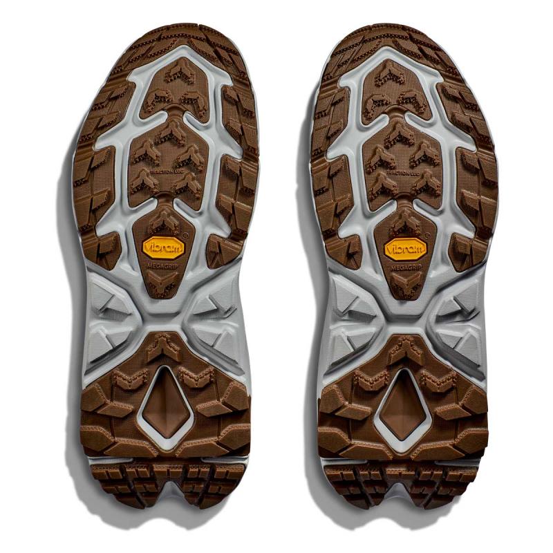 Veldig god stabilitet, der du står godt nedi sålen og den brede plattformen du står på vil få deg trygt frem i fjellheimen. Hoka Kaha 2 GTX (Gore-Tex) har også fått en mer utpreget HUBBLE heel som skaper enda mer stabilitet, spesielt nedover fra toppen. Mellomsålen er todelt, der laget nærmest foten er mykt for å skape komfort, mens laget mot bakken er fastere og mer slitesterkt. Helt ytterst finner vi såklart Vibram megagrip. Slitesterkt og med fantastiske gripeevne uansett underlag.