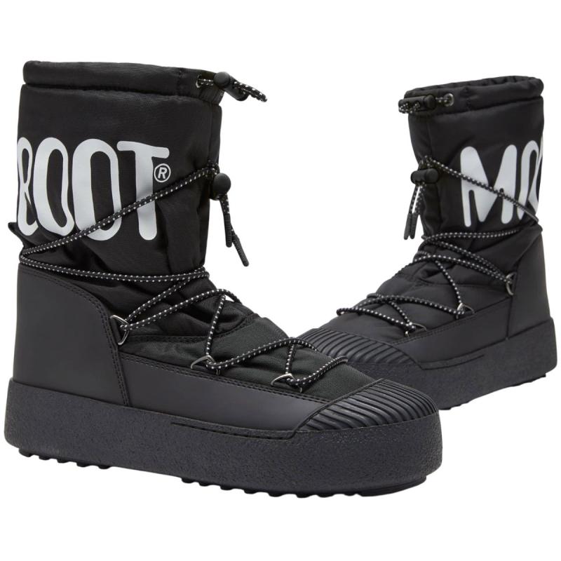 Moon Boot Mtrack Polar vinterstøvel til herre kombinerer egenskapene til en fjellstøvel med komforten til en joggesko, utstyrt med en vannavvisende membran og forseglede sømmer for ypperlig beskyttelse mot snø og regn. Fleksibel mellomsåle av TPU gir god komfort, mens slitesåle av gummi med Moon Boots ikoniske sugekoppmønster gir optimalt grep på glatt underlag. Hurtiglissesystem sørger for superrask av- og påkledning.