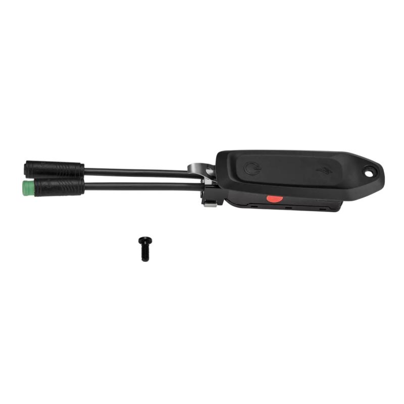 Specialized Turbo Connect Display for montering på overrør. Sykkelen skrus på via en av/på-knapp nederst på displayet, mens tre LED-lys øverst viser gjeldende modus. S-knappen øverst gjør det mulig å skifte mellom moduser, mens en lysbar med 10 LED-lys viser batteristatus. Bluetooth-funksjonalitet muliggjør kobling med Specialized-appen via parringskode (vist på baksiden av displayet). Displayet viser også feilmeldinger for enklere feilsøking. Benytter CR 1620 myntbatteri. Festebolt selges separat.