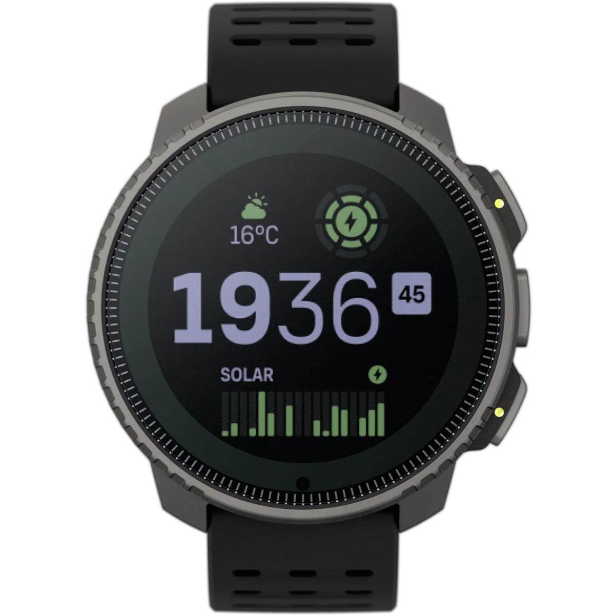 Suunto Vertical Titanium Solar er utstyrt med en batterilevetid som ligger langt foran konkurrentene. Klokken gir det 85 timer batteri i treningsmodus med bruk av den mest nøyaktige GPS-settingen. Ved daglig bruk kan du nyte opp til 60 dager med batterilevetid, og takket være innebygd solcellepanel kan du gå opp til et helt år uten å måtte bekymre deg for lading!