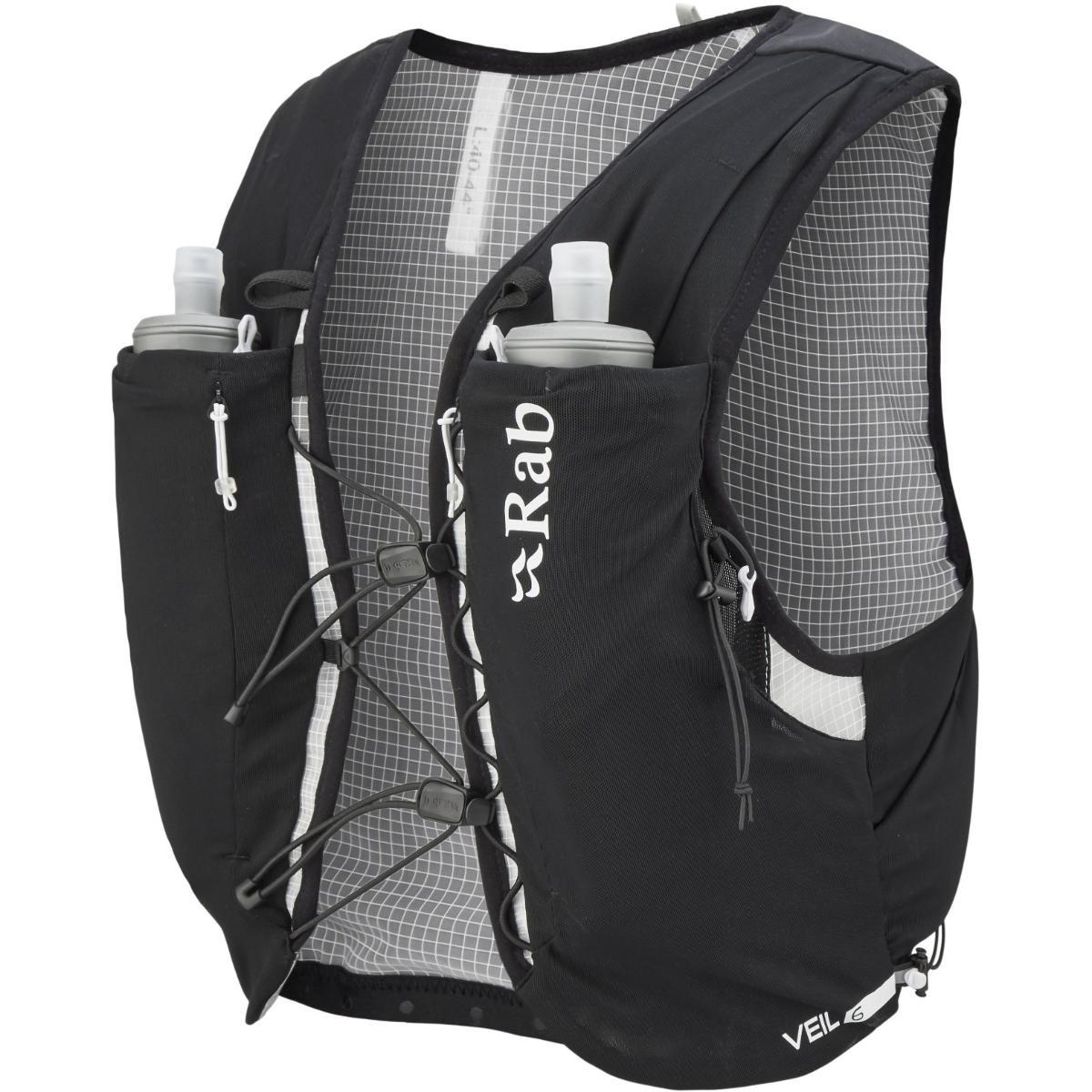 Rab Veil 6L løpevest er designet for lange turer, det være seg i terreng eller på asfalt, hvor du trenger rask og enkel tilgang til drikke og ernæring, samt plass til verdisaker og andre nødvendigheter. Vesten er laget av stretchy og slitesterk Mono Mesh som puster godt og suger til seg minimalt med fuktighet. Sidepanelen i stretch-materiale er designet for å støtte og følge kroppen for optimal bevegelsesfrihet. Festestroppene over brystet gir lett og rask tilpasning uten å legge til unødvendig vekt. Vesten har god plass til drikke med to lommer i front for 500ml flasker og rom for 2l blære bak. En meshlomme på ryggen har plass til ekstra tøy for dager med ustabile værforhold. To glidelåslommer i front samt feste for nøkler gir plass til ernæring og verdisaker. Med Veil 6L har du alt du måtte trenge for lange turer i all slags vær. 2x500ml flasker medfølger.