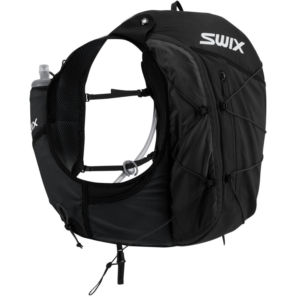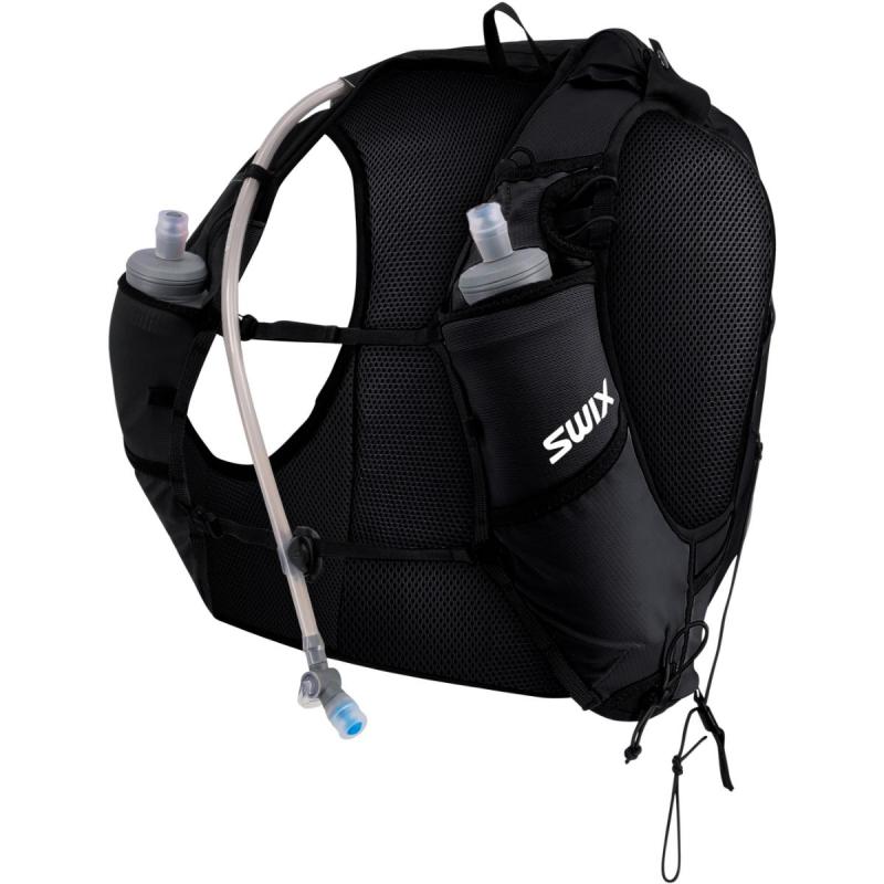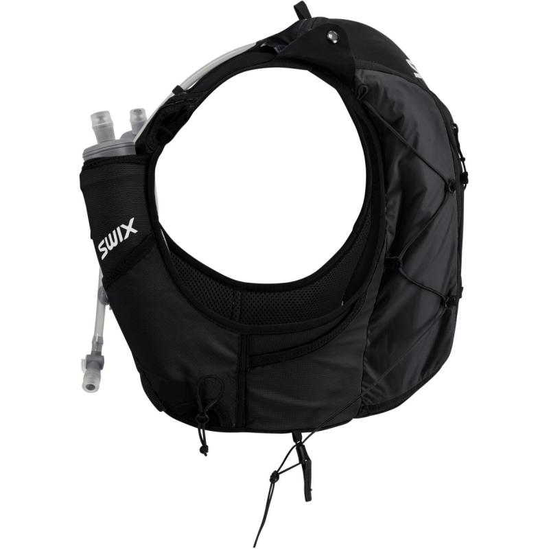 Swix Pace hydreringsvest på 4-liter kombinerer smarte hydreringsløsninger med en lettvekts og komfortabel konstruksjon for behagelig og praktisk bæring av det du måtte trenge på langdistanseturer. Vesten er laget av resirkulert 20D nylon med strategisk plassert pustende space-mesh i polyester. Utvendige lommer i stretch-mesh gir rask og enkel oppbevaring av det du måtte ønske å ha lett for hånden. Utstyrt med nøkkelring på innsiden, samt feste for staver. Swix Pace hydreringsvest på 4-liter holder deg gående kilometer etter kilometer.