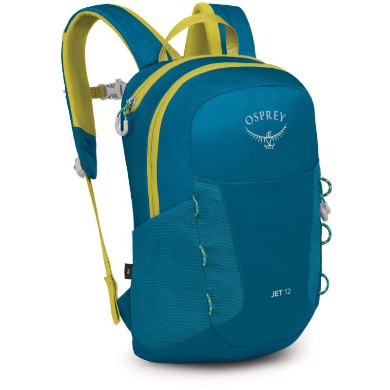 Osprey Jet 12 er en lett og anvendelig sekk til de minste, om det er på oppdagelsesferd i skogen eller på sykkeltur i parken, utstyrt med et behagelig bæresystem og flere smarte oppbevaringsrom. Vannavvisende og flekkresistent materiale gjør at sekken holder seg fin lengre, mens det fargerike designet er garantert å bli en ny favoritt. Osprey Jet 12 er utstyrt med et stort hovedrom, ekstern lomme for hydreringsblære, én mindre glidelåslomme for småsaker, og stretch-lommer i sidene og i front for enkel lagring av tøy, snacks og andre ting man ønsker å ha raskt for hånden. Utstyrt kan også henges fra de seks løkkene i front.
