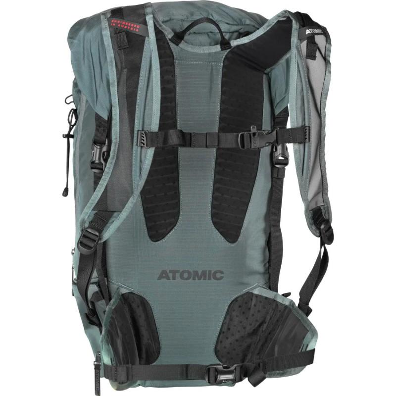 Atomic Backland 30+ er en høyteknologisk ryggsekkk for lengre skiutflukter og overnattinger, utstyrt med rolltop-åpning for enkel justering av volum. Backland 30+ er lett og slitesterk, og utstyrt med flere praktiske funksjoner, deriblant en utvidbar lomme for feller og stegjern, bæreløsning for isøks og staver, samt ekstra løkker på hoftebeltet for festing av utstyr. Diagonal festeløsning for ski gir enkel transport når du er nødt til å ta føttene fatt. Backland 30+ har også dedikert lagringsplass for skredutstyr, nødfløyte, hjelm og tau, og er også kompatibel med hydreringssystem. Reflektivt materiale gir økt synlighet under dårlige lysforhold.